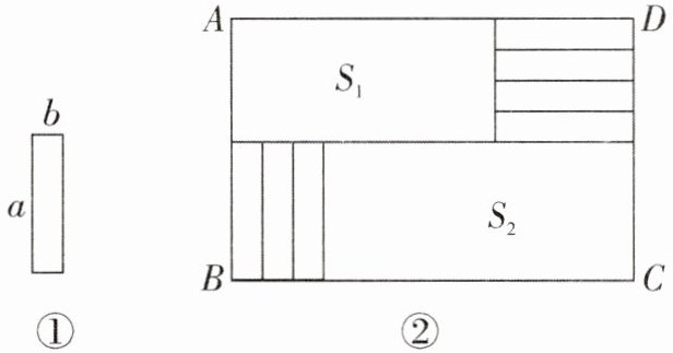 (3)若AB长度不变,AD变长,将这7张小长方形纸片还按照同样的方式放在新的长方形ABCD内,而$S_{1}-S_{2}$的值总保持不变,求a,b满足的关系.