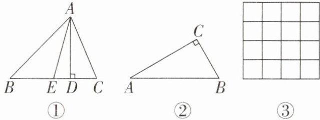 (2) 在如图③所示的每个小正方形边长为 $ 1 $ 的 $ 4×4 $ 方格纸上,画一个 $ \triangle ABC $,使其顶点在格点(格点即每个小正方形的顶点)上,且 $ \lambda_{A}=2 $,面积也为 $ 2 $。