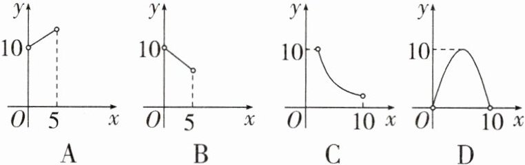 6. 如图,$\triangle ABC$ 的周长为 $10$,$BC = x$,$∠ABC$ 和 $∠ACB$ 的平分线相交于点 $O$,过点 $O$ 作 $EF// BC$ 交 $AB$,$AC$ 于点 $E$,$F$,若设 $\triangle AEF$ 的周长为 $y$,则 $y$ 与 $x$ 的函数关系图像大致是 ( )