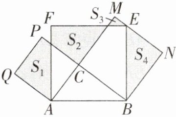 8. 如图,$Rt\triangle ABC$ 中,$∠ACB = 90^{\circ}$,$AC = 3$,$BC = 4$。分别以 $AB$,$AC$,$BC$ 为边在 $AB$ 的同侧作正方形 $ABEF$,$ACPQ$,$BCMN$,四块阴影部分的面积分别为 $S_1$,$S_2$,$S_3$,$S_4$,则 $S_1 - S_2 + S_3 + S_4$ 等于()