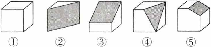 17. 图①是正方体木块,若用不同的方法把它切去一块,可以得到如图②③④⑤所示的不同形状的木块。