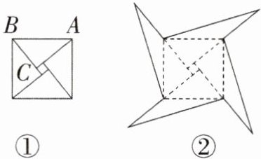 11. 如图①是我国古代著名的“赵爽弦图”的示意图,它是由四个全等的直角三角形围成的。若 $AC = 6$,$BC = 5$,将四个直角三角形中边长为 6 的直角边分别向外延长一倍,得到如图②所示的“数学风车”,则这个风车的外围周长是______。