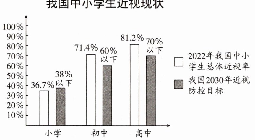 )A. 我国未成年人近视备受社会关注,相较于小学生来说,初中生和高中生 2022 年的总体近视率距离我国 2030 年近视防控目标均存在较大的差距。