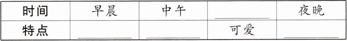 1. 喧闹 苏醒2. 傍晚 迷人 活泼 安静3. 水 霞 雾气 小河 喜爱家乡的小河4. 略