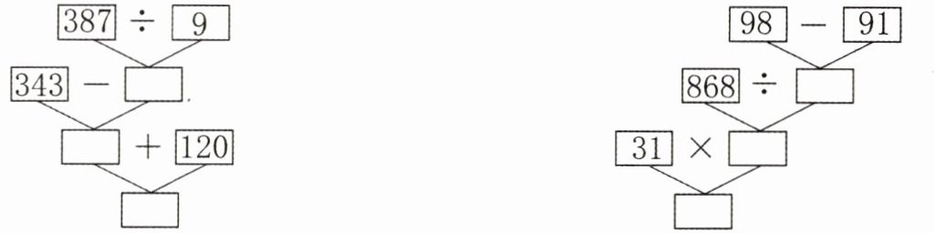 $43$,$300$,$420$,$343−387\div9 + 120 = 420$;