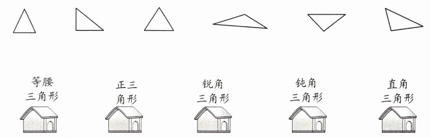 三、帮三角形找家。(连一连)