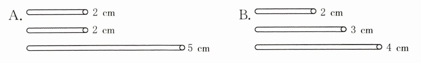 五、下面哪组小棒可以摆成三角形?为什么?