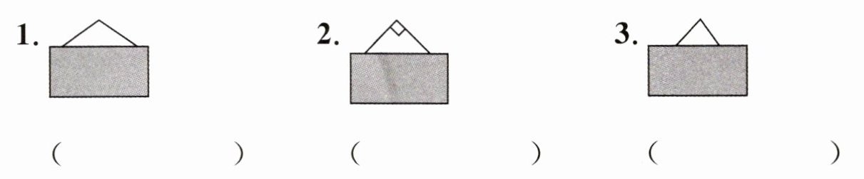 小海把自己所画的三角形用纸板挡起来让大家猜,你猜出每个图形是什么三角形了吗?写下来。
