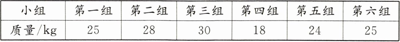 三、$(25+28+30+18+24+25)\div 6=25(kg)$
