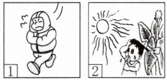 1. cold;on 2. sunny;fly