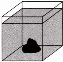 3. 如图,一个棱长 2 dm 的正方体容器里装有 6 L 的水,放入一块石头后(石头浸没在水中),这时容器中的水深是 18 cm。这块石头的体积是多少立方分米?