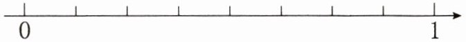 在直线上从$0$开始数,第$1$个小格处标记$\frac{1}{8}$,第$2$个小格处标记$\frac{1}{4}$,第$4$个小格处标记$\frac{1}{2}$,第$7$个小格处标记$\frac{7}{8}$。