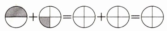 $ \frac { 1 } { 2 } + \frac { 1 } { 4 } = () + () = () $
