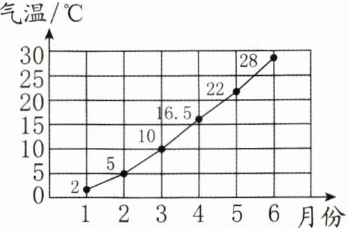 2. 在这6个月里,平均气温最低的是()月,是()℃;平均气温最高的是()月,是()℃。()月到()月的平均气温上升得最快,上升了()℃。