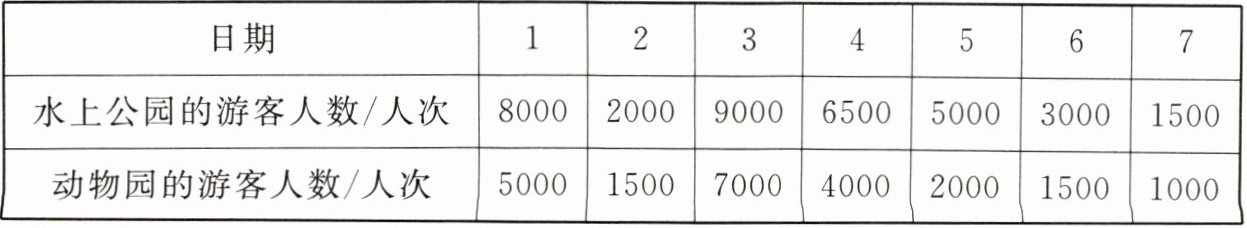 (2)如10月3日水上公园游客人数比动物园多;10月7日两个公园游客人数都较少等(合理即可)。