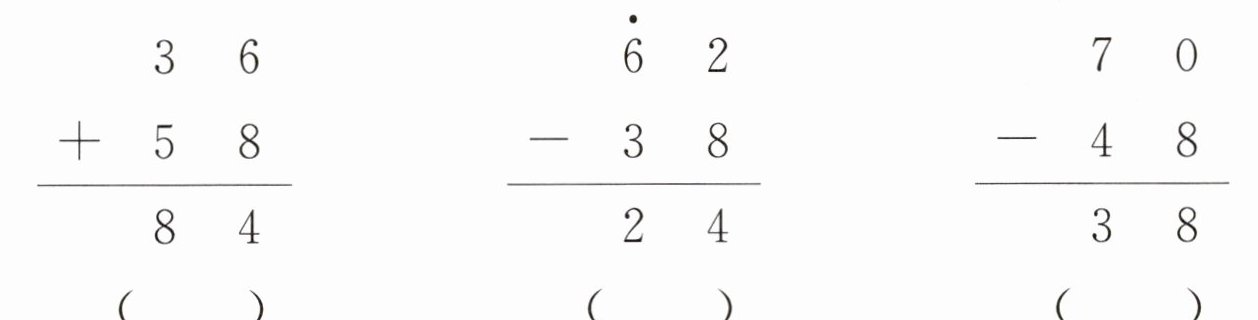 $\begin{array}{r} 3\ 6 \\ +5\ 8 \\ \hline 8\ 4 \end{array} $ ( )