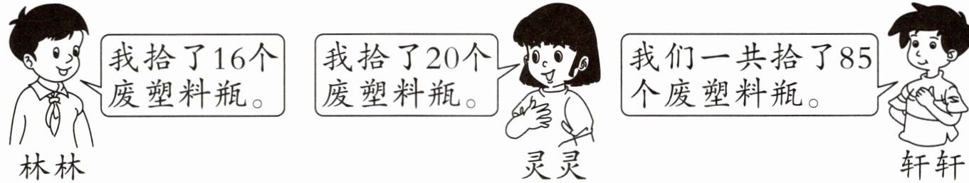 (1)林林和灵灵一共拾了多少个废塑料瓶?(4分)