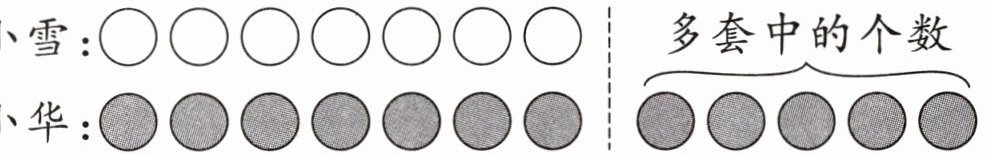 1. 小华套中12个,小雪套中7个。小华比小雪多套中几个?小雪比小华少套中几个?用圆片摆一摆: