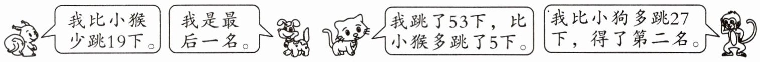二、小动物跳绳比赛,看谁跳得多。(18分)