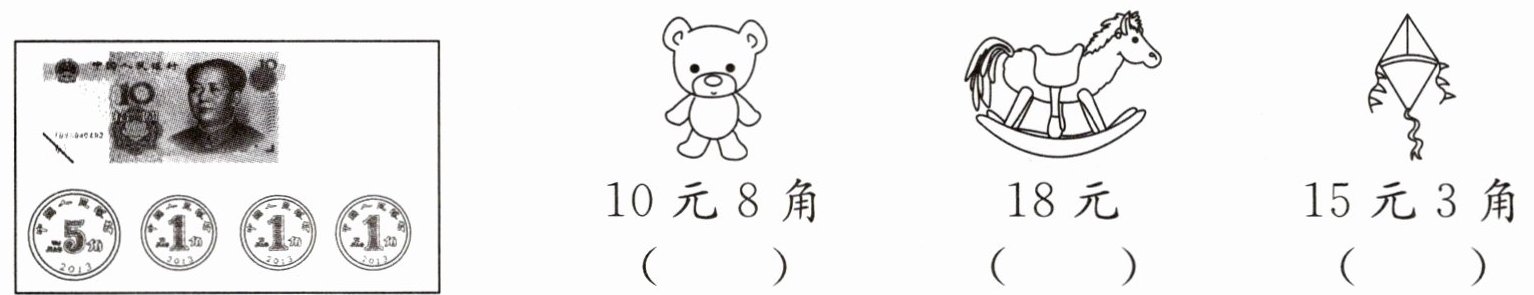 三、给出的钱正好能买什么?在能买的物品下面画“√”。(14 分)