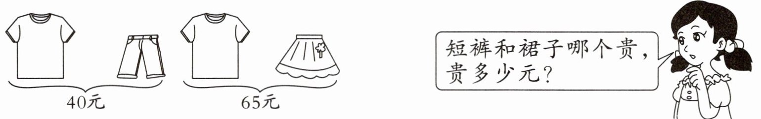 解析:本题考查简单的加减法运算来解决实际问题,通过比较两种商品的价格来确定哪个更贵以及贵多少。