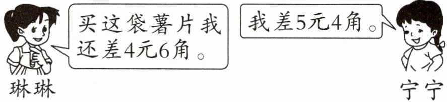 已知琳琳买这袋薯片还差$4$元$6$角,这说明宁宁所带的钱数就是$4$元$6$角;宁宁买这袋薯片还差$5$元$4$角,这说明琳琳所带的钱数就是$5$元$4$角。