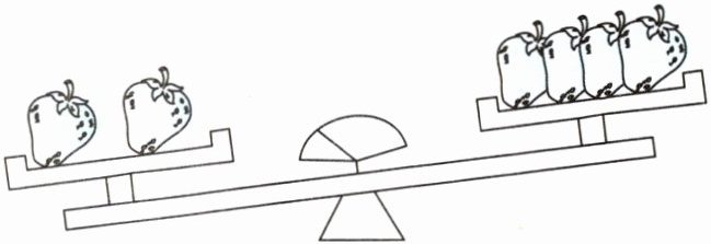 (2)从右边的托盘中拿走( )颗草莓,可以使天平平衡。(2分)
