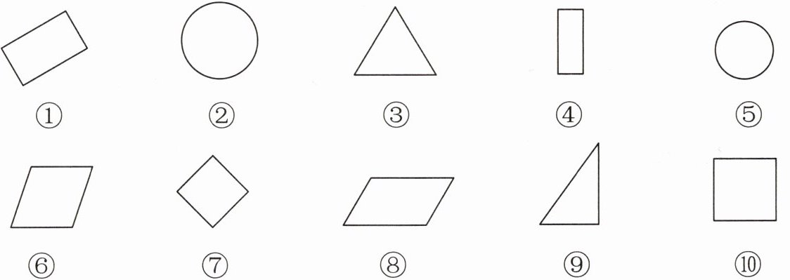 (2)( )号图形是三角形,( )号图形是正方形,( )号图形是平行四边形。