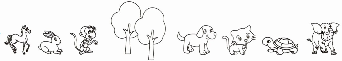 (2)从左往右数,小狗排在第6位。一共有几只小动物?从右往左数,小猴排在第几位?