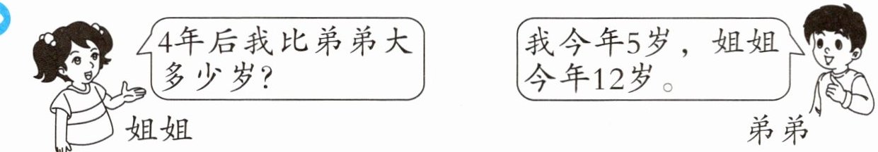 方法二:$12-5= 7$(岁) 答:4年后姐姐比弟弟大7岁。