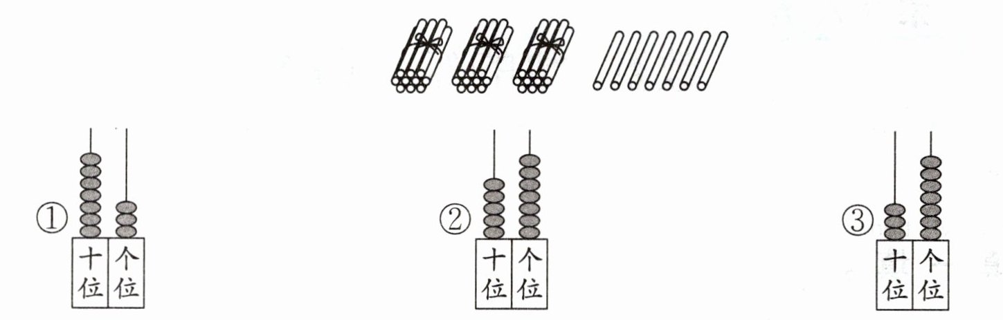 32:在计数器的十位上画3颗珠子,个位上画2颗珠子;