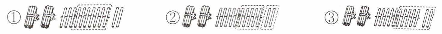 3. 计算$32 - 7$时,先算$12 - 7 = 5$,再算$20 + 5 = 25$,下面的小棒图圈法正确的是(