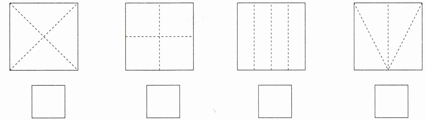 2. 把一张正方形的纸对折两次,折出的可能是哪些图的样子?在正确答案的下面画“√”。(8分)