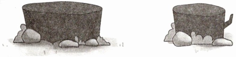 2. 人有年龄,树也有年龄,通常树桩上的一圈代表一岁。下图左边的树有36岁,比右边的树大18岁。右边的树多少岁?两棵树一共多少岁?