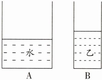 (3)当A容器内加水至与B容器乙液面相平时,设此时水深为$h_{1}$,此时水对容器底部的压强$p_{1}=p_{\text{水}}+\Delta p=784\ \text{Pa}+196\ \text{Pa}=980\ \text{Pa}$;由$p=\rho gh$可得此时水的深度$h_{1}=\frac{p_{1}}{\rho_{\text{水}}g}=\frac{980\ \text{Pa}}{1.0×10^{3}\ \text{kg/m}^{3}×9.8\ \text{N/kg}}=0.1\ \text{m}$;由题知,原来容器A、B底部所受液体的压强相等,即$p_{\text{乙}}=p_{\text{水}}=784\ \text{Pa}$;由$p=\rho gh$可得,液体乙的密度$\rho_{\text{乙}}=\frac{p_{\text{乙}}}{gh_{1}}=\frac{784\ \text{Pa}}{9.8\ \text{N/kg}×0.1\ \text{m}}=0.8×10^{3}\ \text{kg/m}^{3}$。