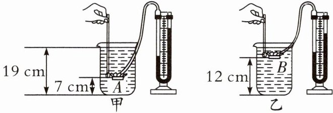 (1)小亮向小明介绍自己的实验推理过程:在甲、乙两烧杯中,A、B两点到烧杯底部的距离是不同的;通过观察压强计U形管两侧