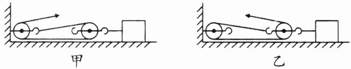 7. 利用两个滑轮和一根绳子组成滑轮组,将一重物水平拉动,滑轮组的装配有如图甲、乙所示的两种情况,则( )
