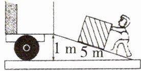 3. 如图所示,斜面长5m,高1m,工人用沿斜面方向400N的力把重1600N的箱子匀速推到车上,推力对箱子做的功是