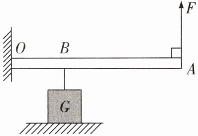 4. 如图所示,轻质杠杆OA可绕O点转动,物体G与地面接触面积为100$cm^{2}$,$AB= 2OB$,在A端施加与杆垂直的拉力F为20N时,物体G对水平地面的压强为1000Pa,则物体G的重力为