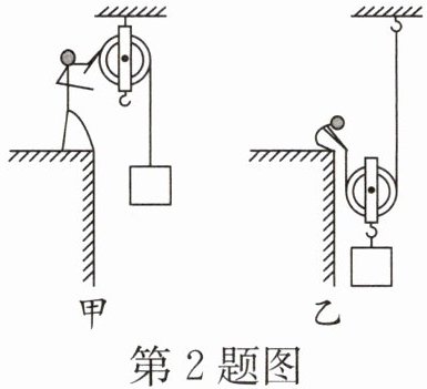 2. 如图所示,小明分别用甲、乙两个滑轮把同一袋沙子从地面提到二楼(不计绳重与摩擦),使用甲滑轮的目的是为了