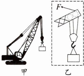 5. 如图甲所示的履带式起重机可以用来吊装重型材料,其前端滑轮组的放大图如图乙所示。某次作业中,起重机将$9×10^{3}N$的物体匀速吊起5m高,绳端拉力F为$4×10^{3}N$,下列说法正确的是(