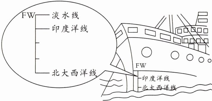 2. 为保证安全,海船的船舷上画有载重线,如图所示的是部分载重线。当船从北大西洋驶入印度洋时,船受到的浮力