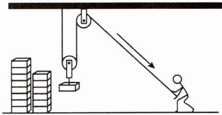 3. 如图,建筑工地上,工人利用滑轮组使900N重的建材以0.1m/s的速度匀速上升,用时100s,建材上升的高度是