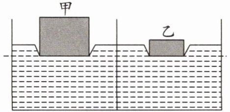 6. 甲、乙两个实心柱形物块放在相同的海绵上,乙下面的海绵凹陷程度比较深。将它们沿水平方向切去一部分后,剩余部分再次放置在海绵上,海绵的凹陷程度如图所示,则(