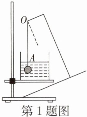 1. 如图所示的是“判断重力的方向”实验。为了能与重力的方向形成对比,特使用了一杯水,以水面作为参考面,改变悬线OA的方向,我们总观察到OA与水面