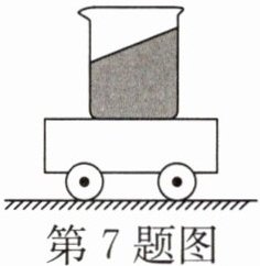 7. 如图所示,小车运动时盛有水的烧杯水面向右倾,则小车运动状态变化的情况是 (