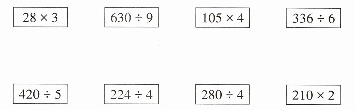 $28×3$与$420÷5$相连;$630÷9$与$280÷4$相连;$105×4$与$210×2$相连;$336÷6$与$224÷4$相连。