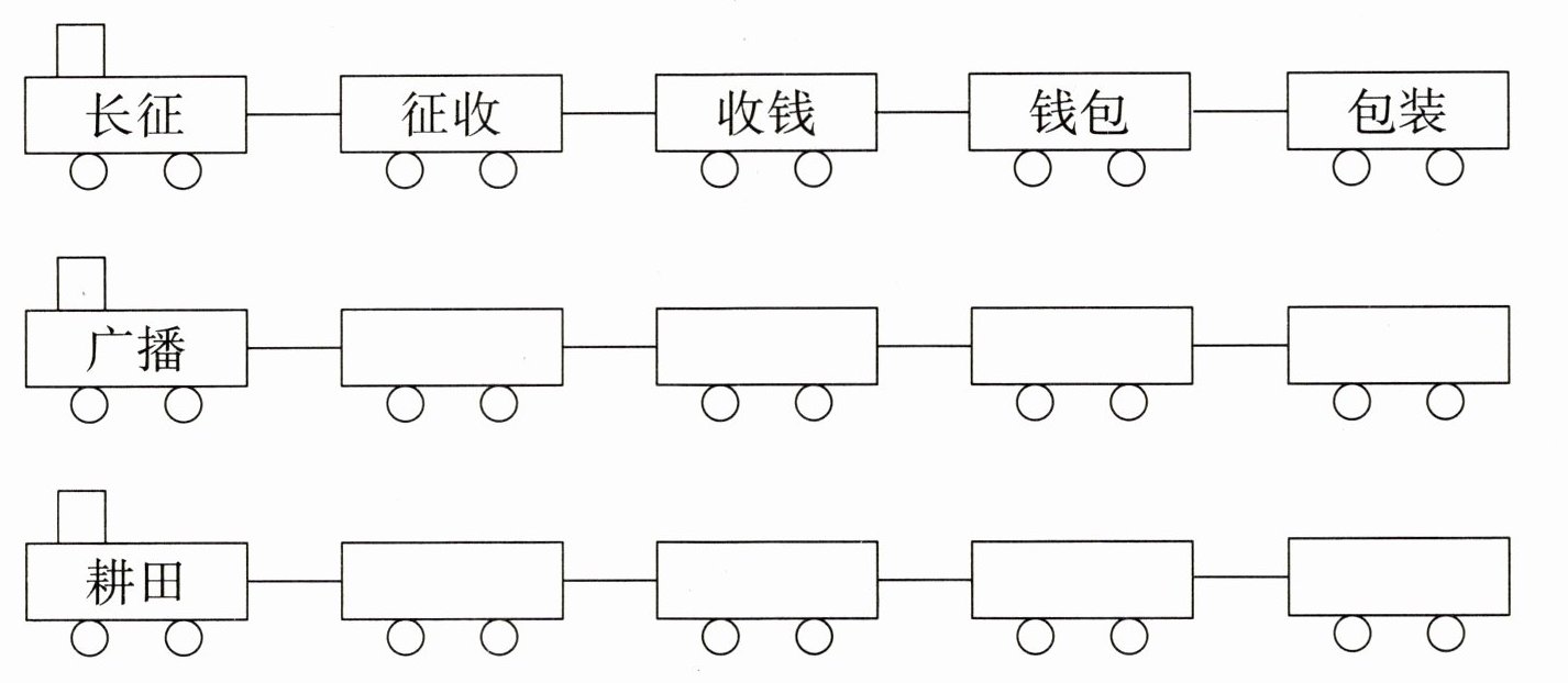 广播 — 播放 — 放学 — 学生 — 生活;耕田 — 田地 — 地方 — 方向 — 向往。