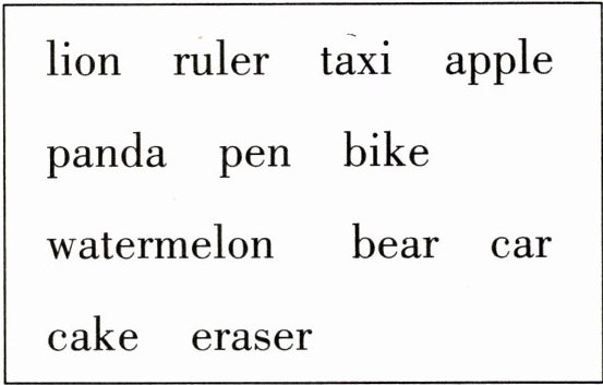 二、按要求将下列单词分类。