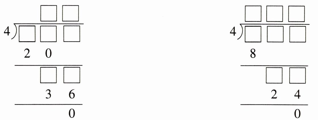 - 右边竖式:被除数是$824$,商是$206$。即从左到右,从上到下,第一个竖式依次填$5$、$9$、$2$、$3$、$6$、$3$、$6$;第二个竖式依次填$2$、$0$、$6$、$8$、$2$、$4$。